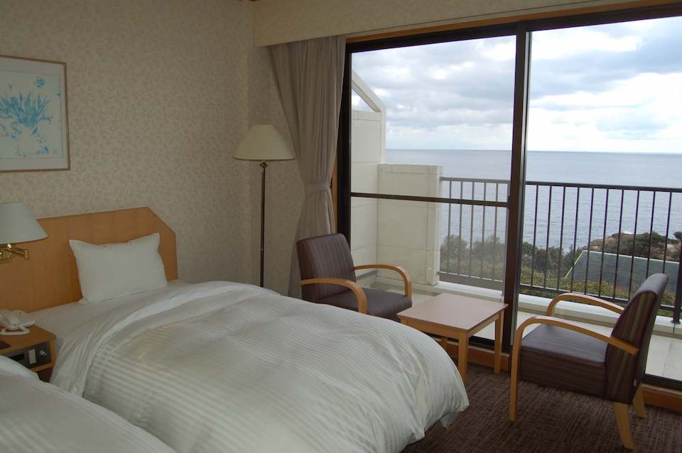 温泉設備があるリゾートホテルです。朝は朝日を、昼は広大な水平線を、夜はロマンティックな漁火を見ることができます。