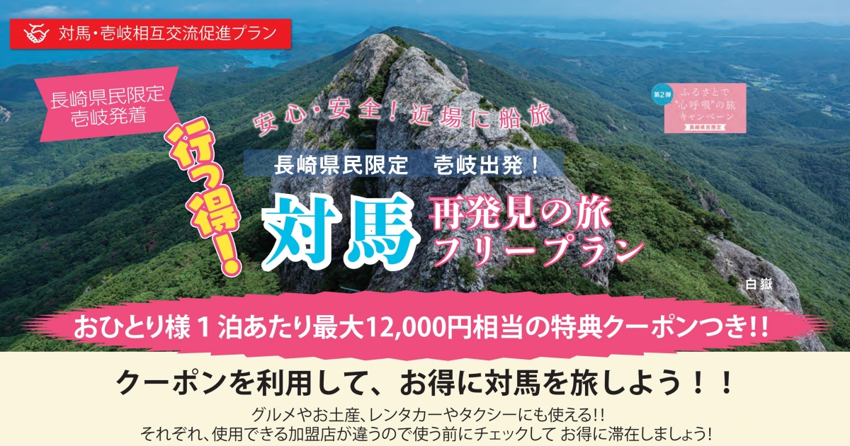 「壱岐出発対馬宿泊」・「対馬出発壱岐宿泊」のお得なフリープランが販売されました!!!