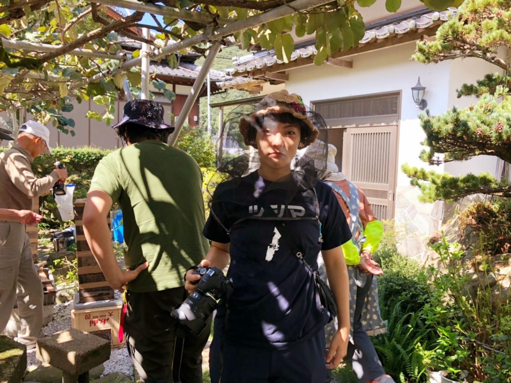 まずは、蜂に顔まわりを刺されないようにブロックするネットを参加者全員にプレゼントします。