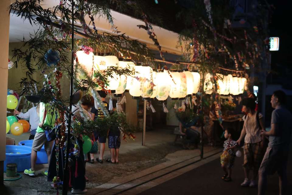 対馬市厳原町の市街地で古くから行われている、子どものためのお祭りです。浴衣を着た子どもたちが、笹や色紙で飾られた町内各地のお地蔵様にお参りし、大人からお菓子をもらいます。地蔵盆は厳原の子どもたちにとって夏の楽しみのひとつです。