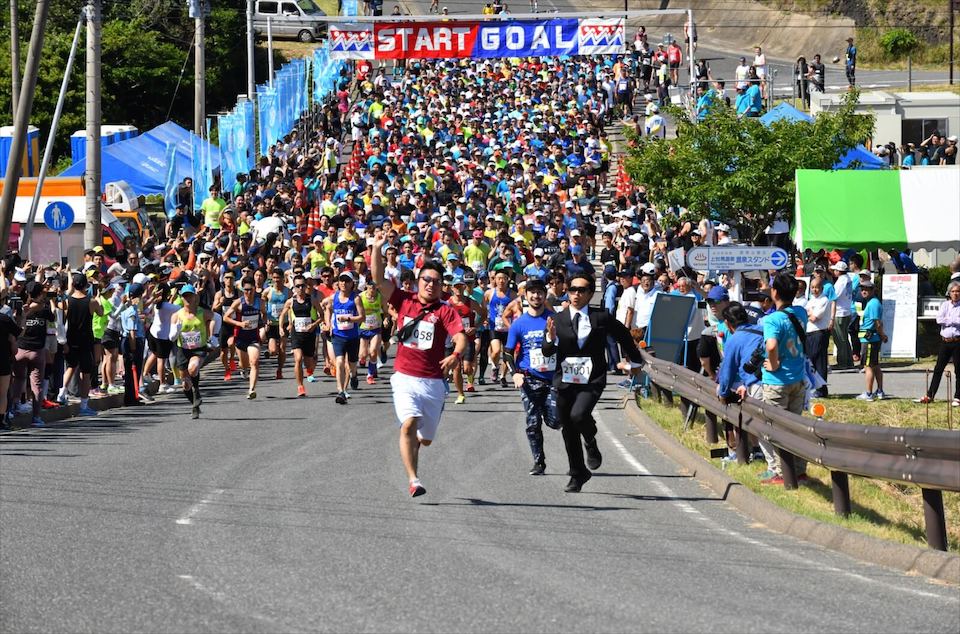 スタートからゴールまでアップダウンを繰り返す過酷なコースです。起伏の激しさに初夏の暑さが加わる過酷なレースを体感してください。