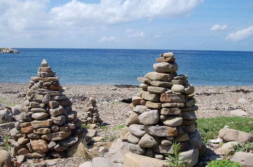 海岸の石を円すい状に積み上げて、男児の健やかな成長や五穀豊穣を願う伝統行事で、「ヤクマ祭り」と言われます。
