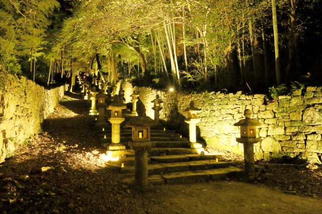 対馬藩主・宗家の菩提寺で、国指定史跡の万松院では、一年に一度、約350基の灯篭に明かりを灯し、御霊をお祭りします。闇に浮かぶ無数の灯篭が、幻想的な幽玄の世界を醸し出します。