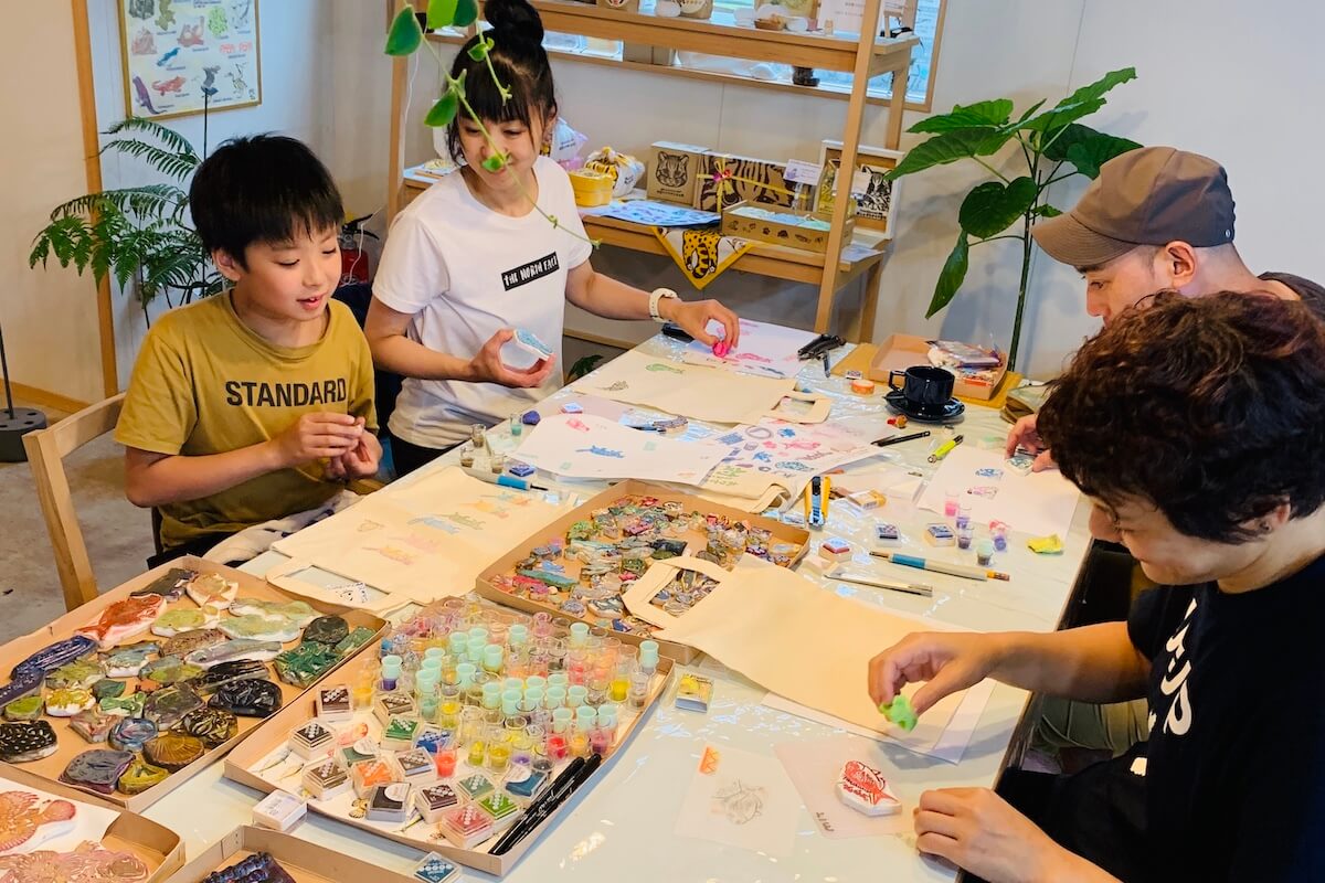 体験メニューでは、MITデザイナーのオリジナル消しゴムはんこを押して、世界に一つだけの作品を作る事ができます。