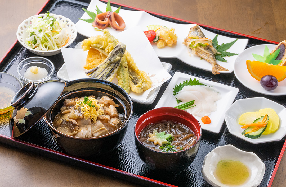 美津島町にある「つしま亭さと」です。対馬の旬をまるごと堪能できます!