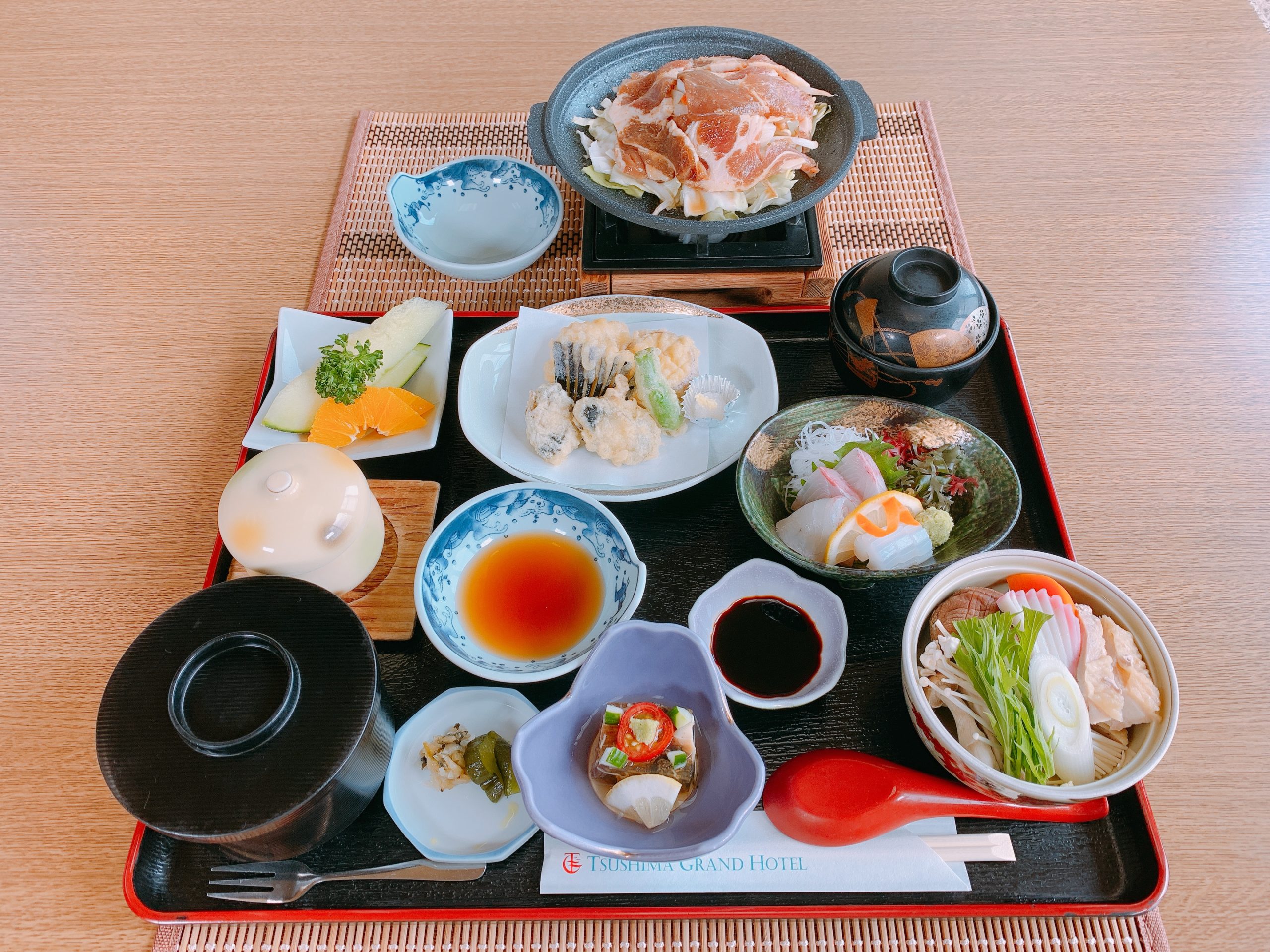 - 対州御膳、玄人御膳、玄海膳、天ぷら御膳、エビフライとチキン南蛮セット、穴子天丼、鶏の六兵衛、ステーキセット、ビーフシチュー、とろとろオムライス など