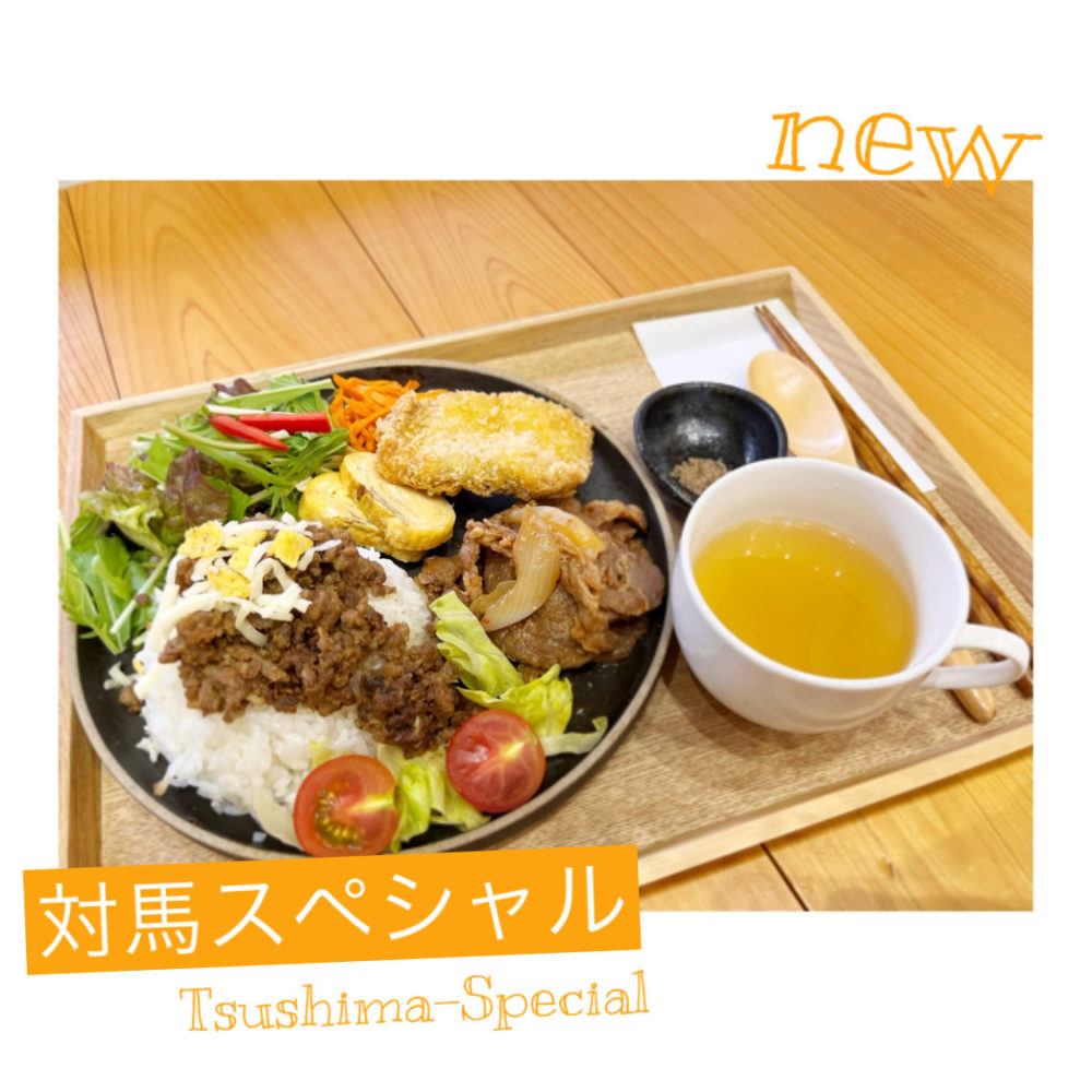 対馬の美味しい食材を使ったワンプレートランチをご用意しています。10:00~16:30まで、どの時間でもお食事・カフェメニューをご提供いたします。ランチでも、ちょっとした休憩でも、お気軽にお越しください。