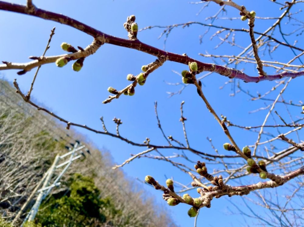 ゲンカイツツジの次は桜が咲きますが、さすがにまだ早かったようです。つぼみは膨らんでますね~。