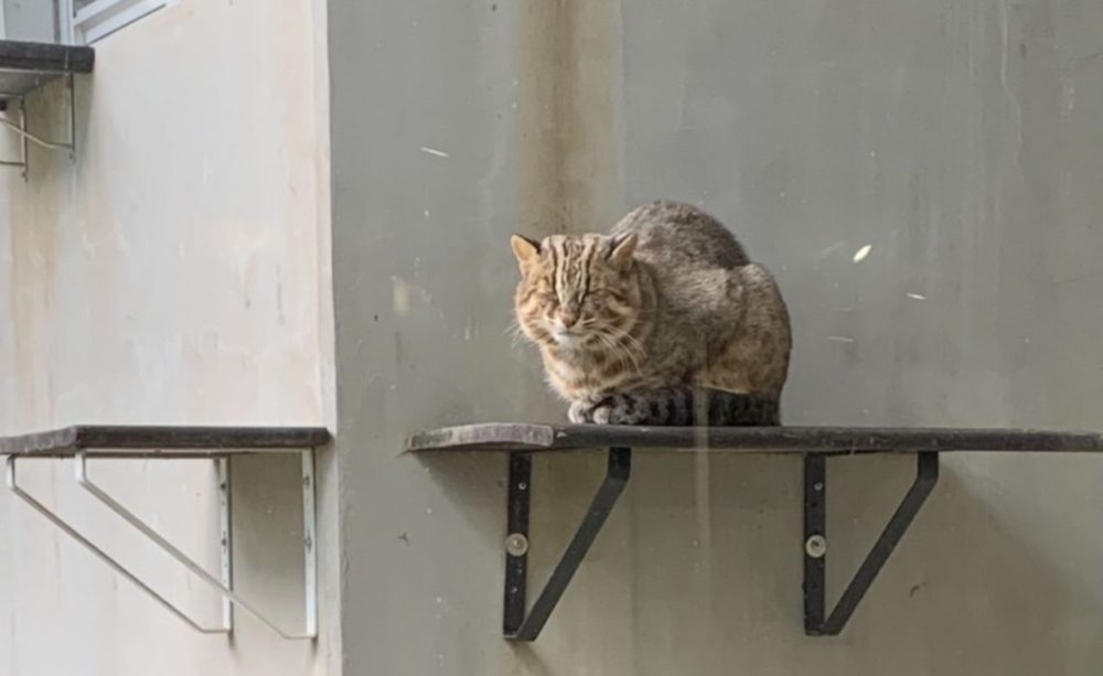 寒いのが苦手なキジトラですが紅葉を楽しみに頑張って寒さに耐えます。