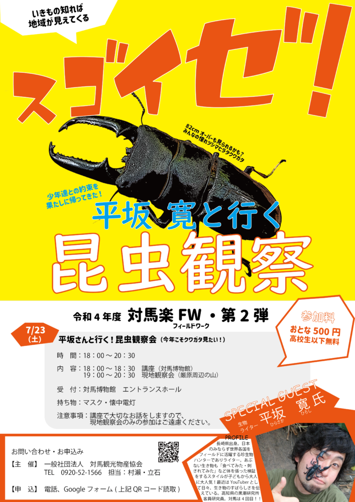 対馬楽フィールドワーク第2弾「平坂寛と行く 昆虫観察会」