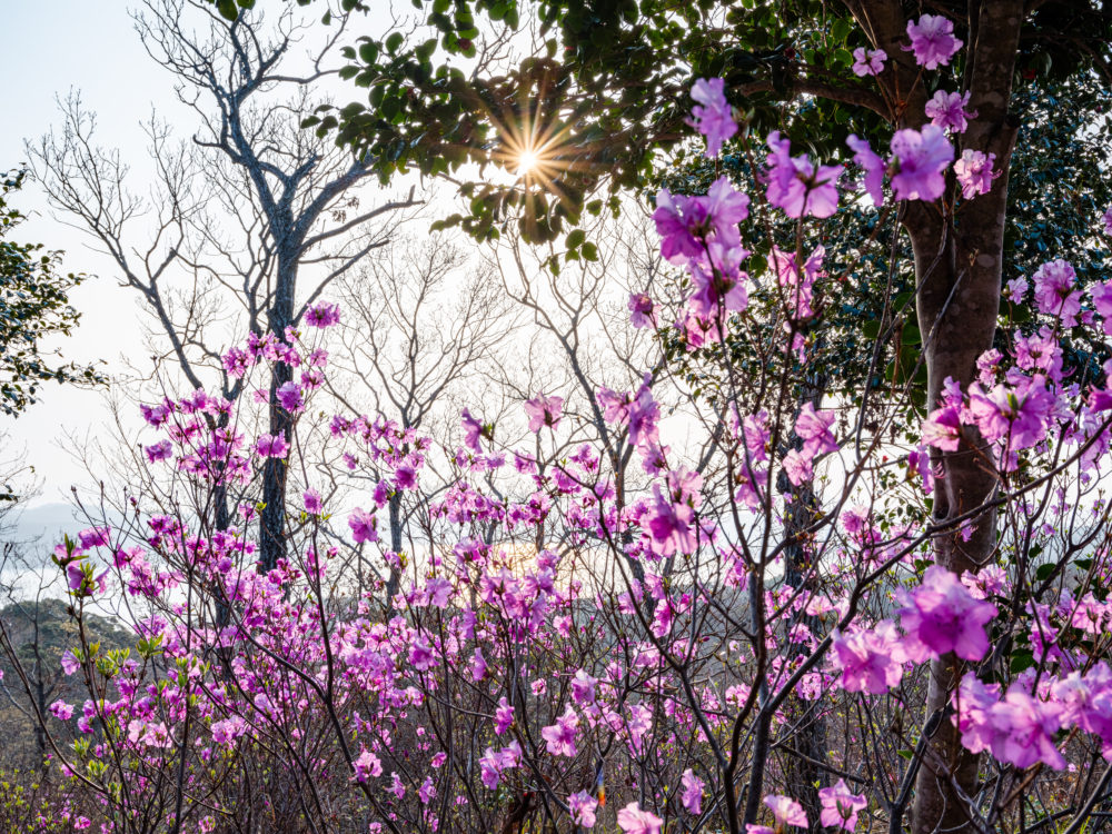 ゲンカイツツジは「市の花」になっていて、はやいものは3月上旬から開花が始まり、中旬をピークに3月下旬まで続き、山のあちこちでピンク色の花を咲かせ対馬に春の訪れを知らせてくれる花です。対馬では、山地部だけでなく、海岸にまで生えていることができます。