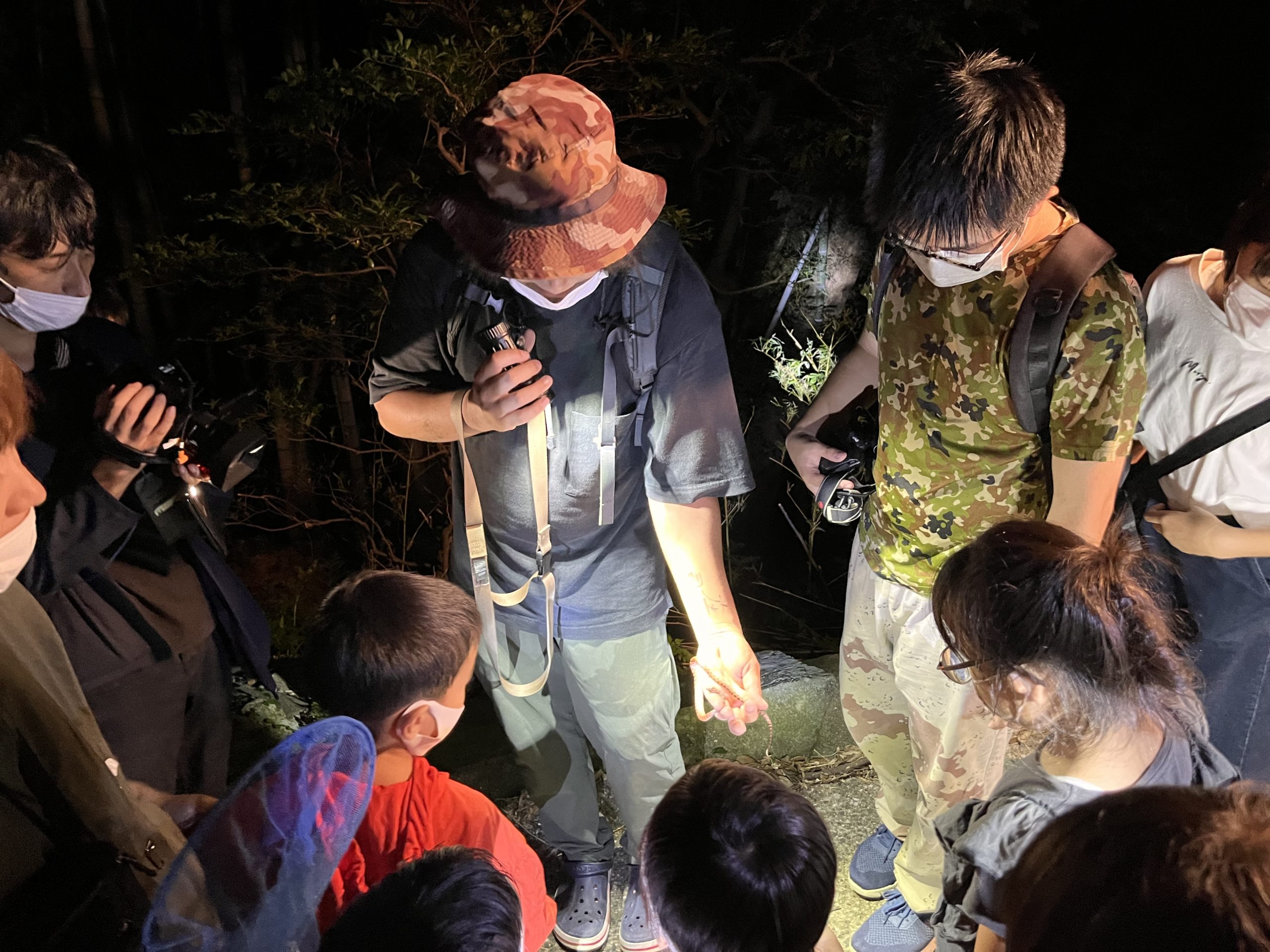 そして、いよいよ外も暗くなってきたので、近くの山まで夜の昆虫観察会に出かけます。