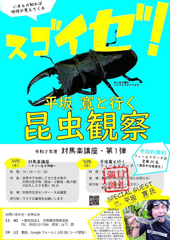 先日告知いたしました「対馬楽講座・第1弾 ~生き物編~(講師・平坂寛氏)」ですが、