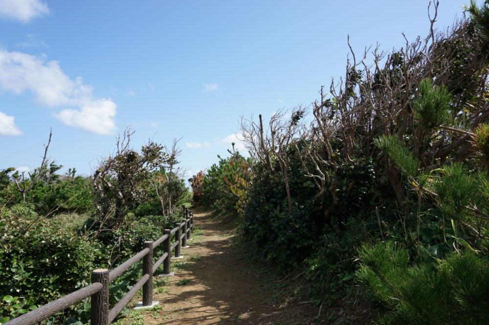 殿崎にある日露戦争の碑やヘリポートの奥を進む、30分程度のハイキングコースです。
