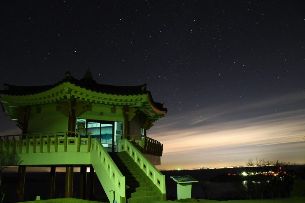 韓国まで49.5㎞の至近距離にある上対馬町は、天気のよい日には韓国釜山市の町並みが望める、まさに「国境の町」です。この展望所は、地理的にも歴史的にも深い関係にある韓国の古代建築様式を取り入れて建造されており、展望台についてはソウルのパゴダ公園にある多目的施設を、ゲートについては韓国国際ターミナル(釜山)の入口ゲートをそれぞれモデルにしています。