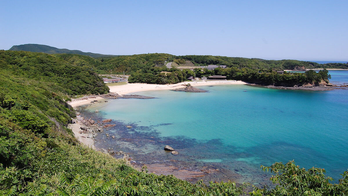 対馬北部東岸に位置する三宇田浜は、平成8年に「日本の渚・百選」の認定を受けた対馬でもトップクラスの海水浴場です。対馬では珍しい極めの細かい貝殻成分からなる天然白砂の浜です。