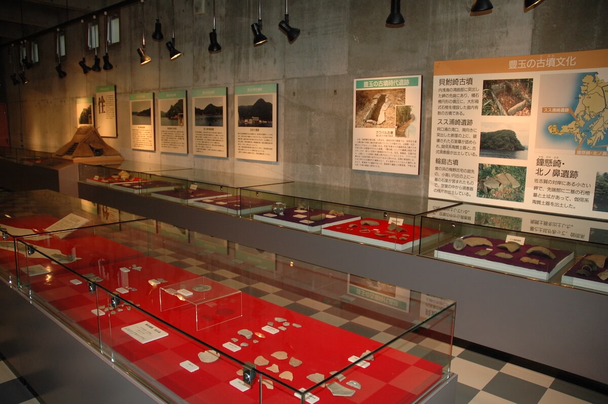 二階建てになっており、一階は縄文時代と弥生時代の町内遺跡出土品を展示。二階は現近代の農具、漁具、狩猟用具、生活用具等を展示しています。