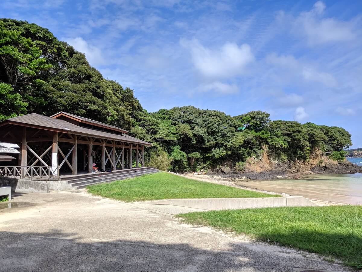 ペンション、温泉施設「渚の湯」、キャンプ場などが隣接しており、夏を中心に島内外の海水浴客で賑わうスポットです。