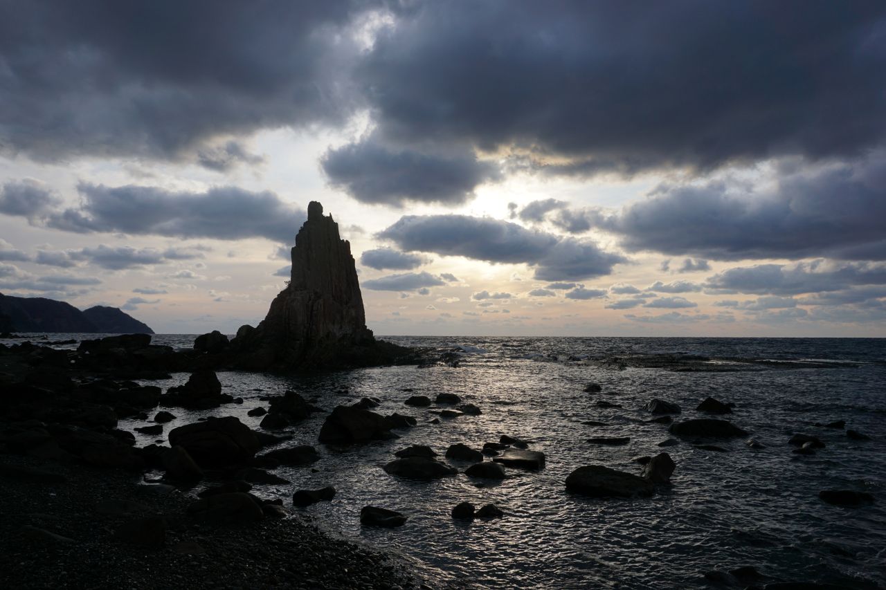 女連の立岩(うなつらのたていわ)は、対馬北西部の女連地区の海岸にある奇岩です。名前の通り、平べったい岩が海岸に立っています。