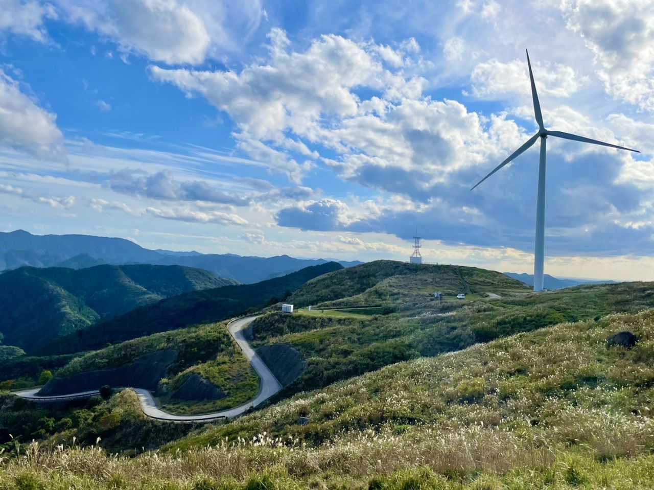 標高287mの山。山を登っていくと大きな風車があり、写真映え間違いなし! 千俵蒔の名前の由来は、昔野焼きが行われて山全体が草に覆われており、麦やソバの種を千俵ほども蒔ける広大な山であるということから、この名前がついたと言われています。