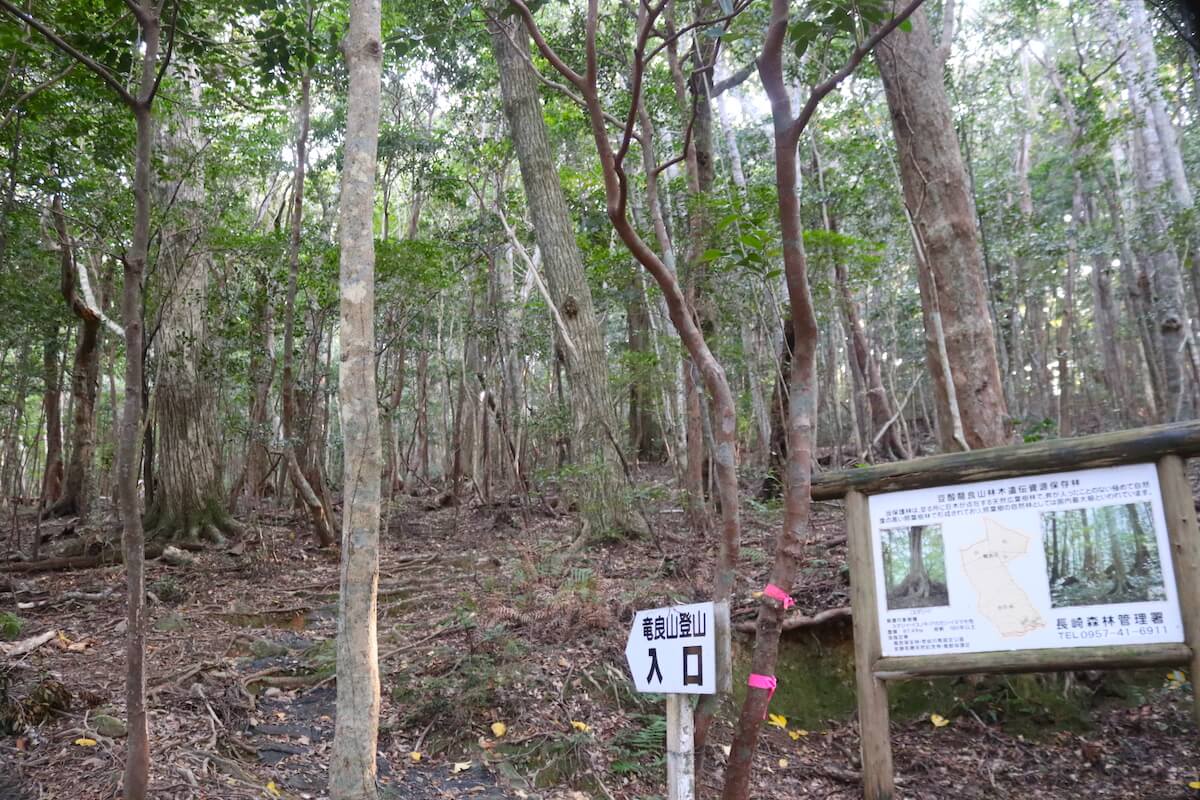 厳原町南部に位置し、標高558mの龍良山の麓に広がる原始林です。