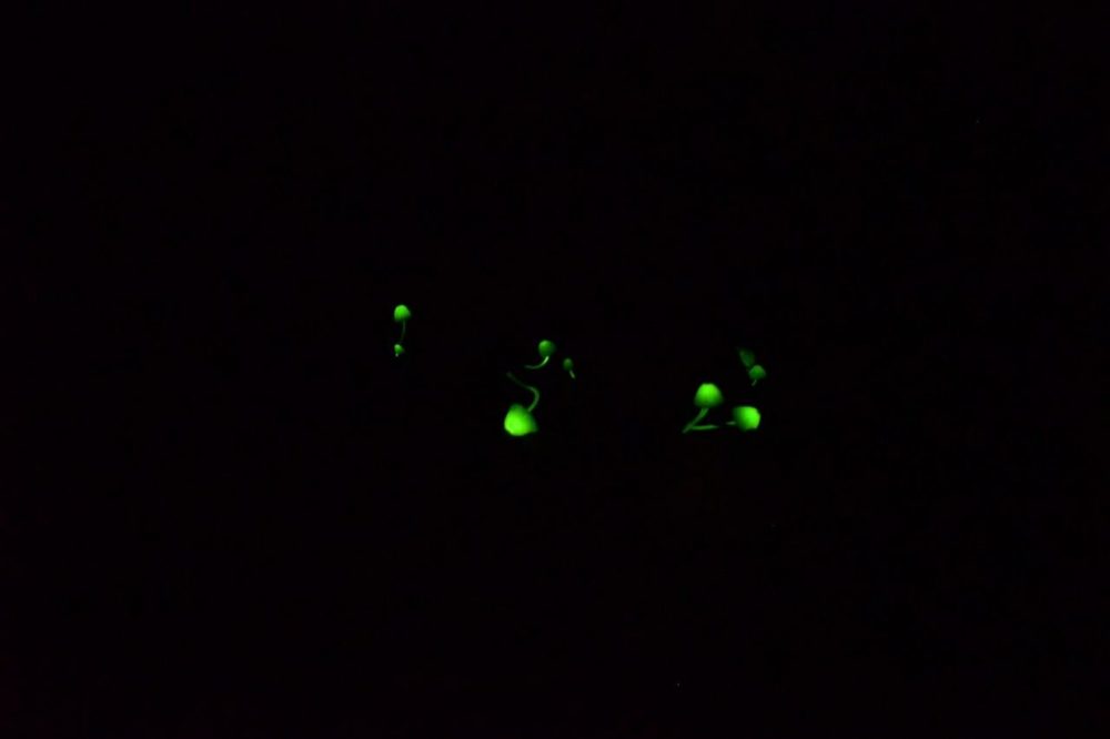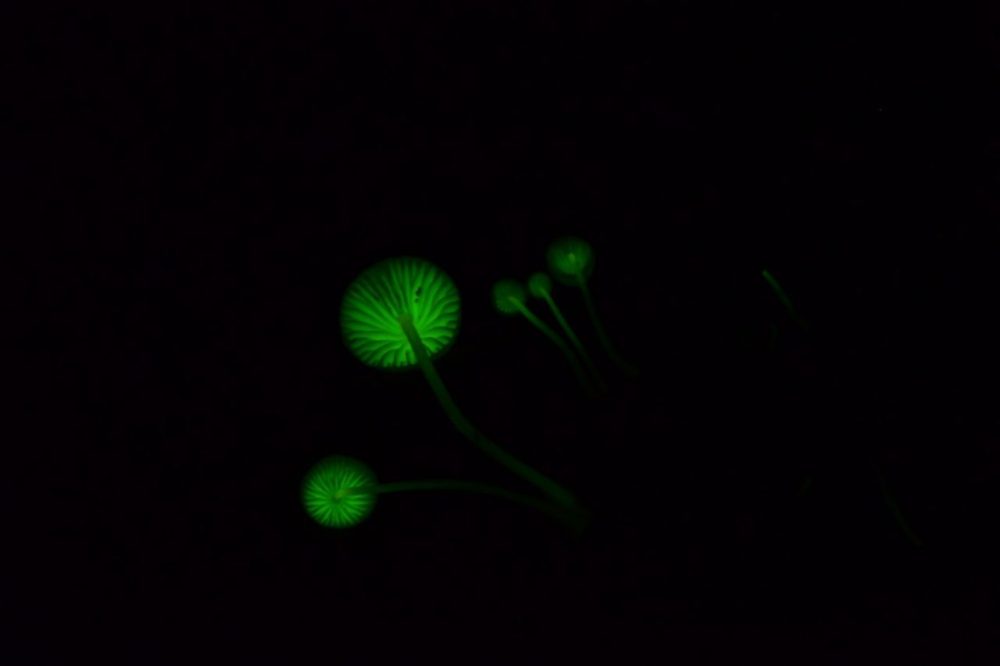 みんなで写真を撮っていたら、地面にまたも淡く輝く「光るキノコ」!段々と光り始め気づけば意外とある!!!